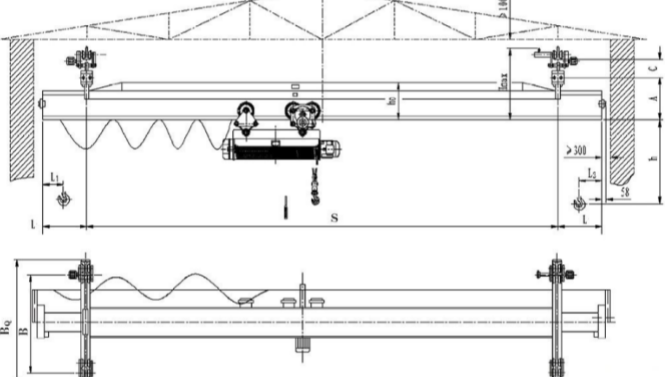 2、LX型電動式單梁懸掛起重機整體與CD1型、MD1型電葫蘆配套設施應用,電葫蘆懸架于承重梁工型鋼或承重梁下上立,其吊重為0.5t-5t,跨距為3-16m,工作中等級為A3-A4,工作中溫度為-25℃~40℃。